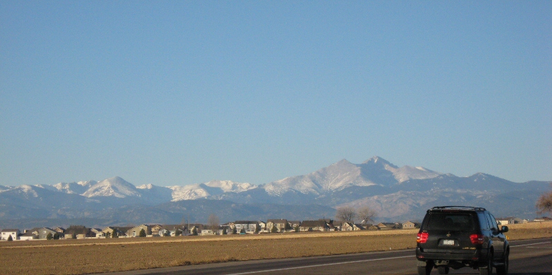 Longs Peak at eight-fifteen in the morning. Looks like the storm left a little snow.