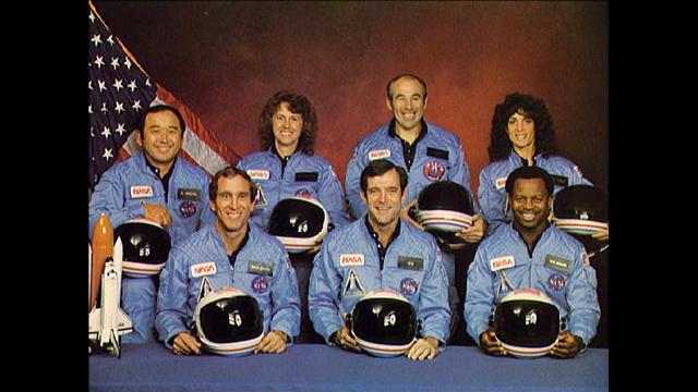| The space shuttle U.S Challenger explodes just after takeoff killing all member of its crew. |