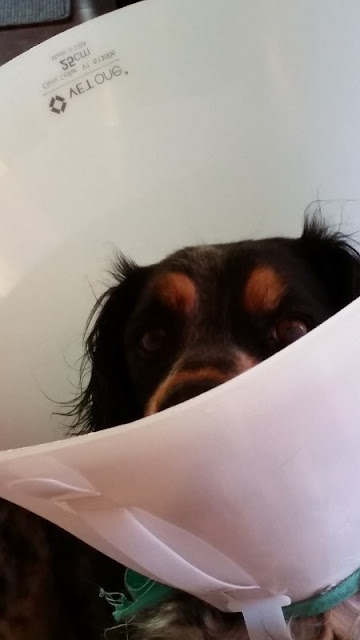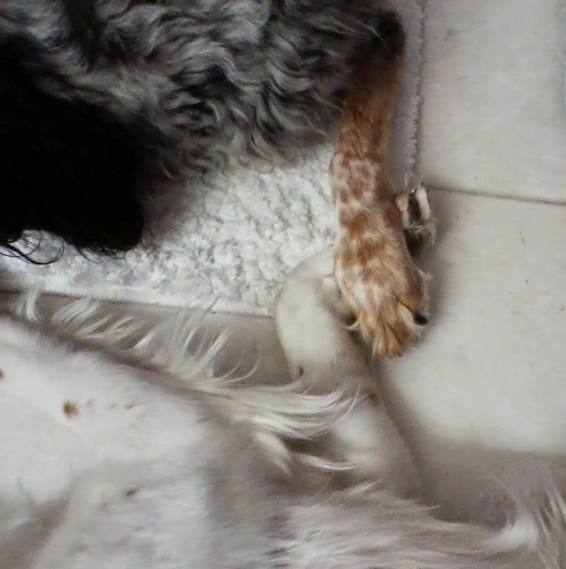 Platelet Rich Plasma injections, they are used to help with severe osteoarthritis. The first injections she had done two month ago helped a bit so I am amazed by how much the second ones have helped her already. The Doctor said she wouldn't show any real improvement until a week had past. I was rubbing her belly and it finally dawned on me that she was lying in a position where both legs were wide open just like a puppy sleeping on its back. She is feeling so much better today it is getting hard to keep her as quiet as the vet wants her to be until Sunday. So she is on leash walks only, not allowed to go out into the backyard to go potty without being on a leash, and not allowed to go downstairs. On Sunday we are all free to get on with our normal lives.